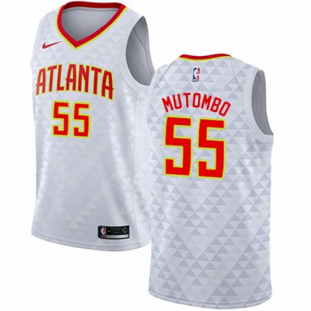Mens Nike Atlanta Hawks 55 Dikembe Mutombo Swingman White NBA Jersey Association Edition