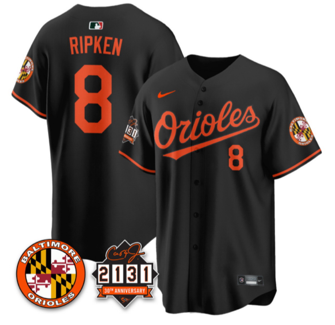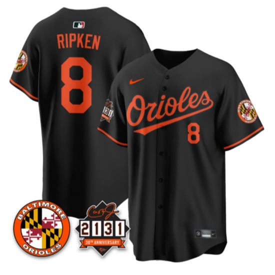 Mens Nike Baltimore Orioles 8 Cal Ripken Jr Black 30TH anniversary 2131 Patch Stitched Baseball Jerse