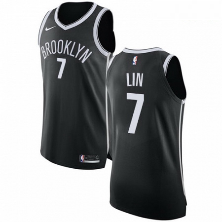 Home>NBA>Brooklyn Nets>Men>Mens Nike Brooklyn Nets 7 Jeremy Lin Authentic Black Road NBA Jersey Icon Edition