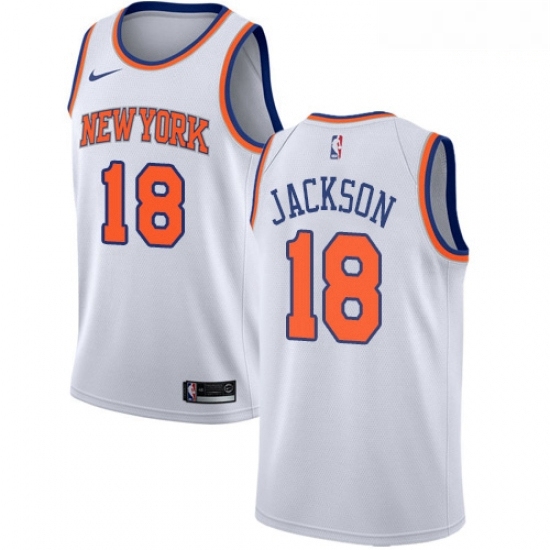 Home>NBA>New York Knicks>Men>Mens Nike New York Knicks 18 Phil Jackson Swingman White NBA Jersey Association Edition