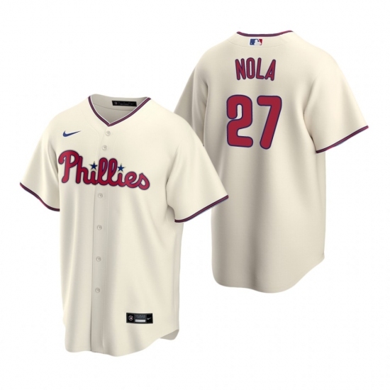 Mens Nike Philadelphia Phillies 27 Aaron Nola Cream Alternate Stitched Baseball Jerse