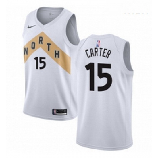 Mens Nike Toronto Raptors 15 Vince Carter Swingman White NBA Jersey City Edition