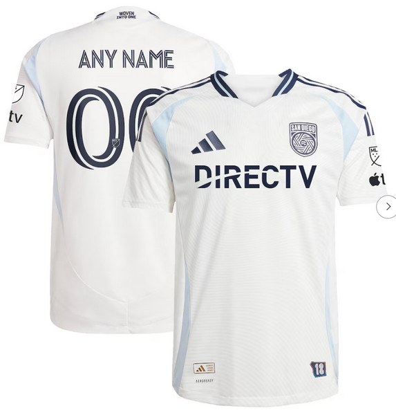 Home>Soccer>MLS Soccer Jerseys>San Diego FC>Mens San Diego FC adidas White 2025 Woven Into One Authentic Custom Jersey