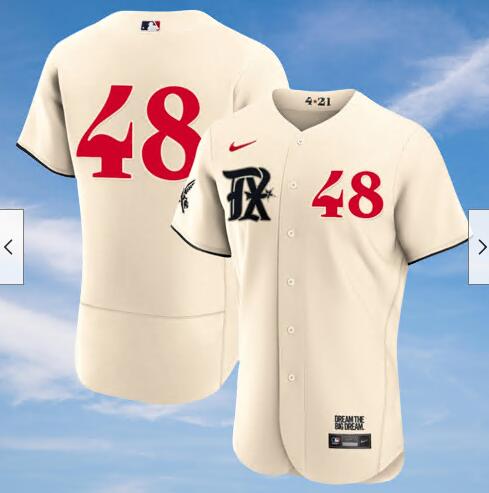 Men's Texas Rangers Jacob deGrom #48 Cream 2023 City Connect Cool Base Stitched Baseball Jersey