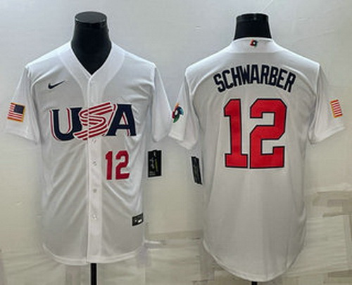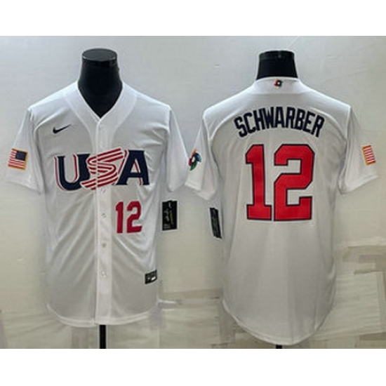 Men's USA Baseball #12 Kyle Schwarber Number 2023 White World Baseball Classic Stitched Jerseys