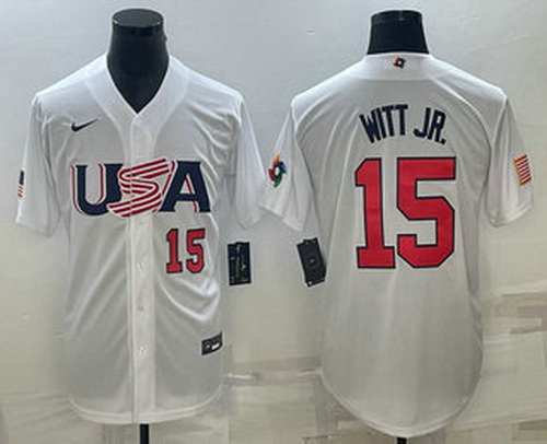 Men's USA Baseball #15 Bobby Witt Jr Number 2023 White World Baseball Classic Replica Stitched Jersey
