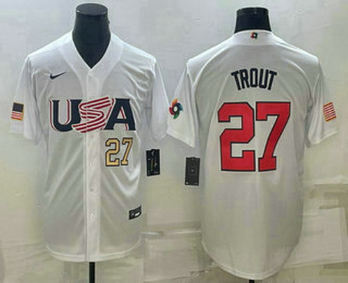 Home>MLB>2023 World Baseball Classic>USA>Men's USA Baseball #27 Mike Trout Number 2023 White World Baseball Classic Replica Stitched Jerseys
