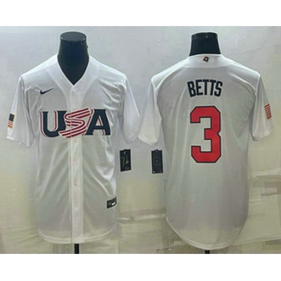 Men's USA Baseball #3 Mookie Betts 2023 White World Baseball Classic Replica Stitched Jersey