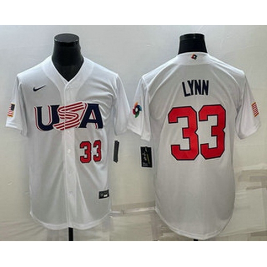 Men's USA Baseball #33 Lance Lynn Number 2023 White World Baseball Classic Stitched Jersey