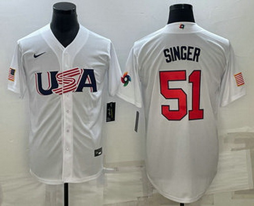 Men's USA Baseball #51 Brady Singer 2023 White World Baseball Classic Stitched Jerseys