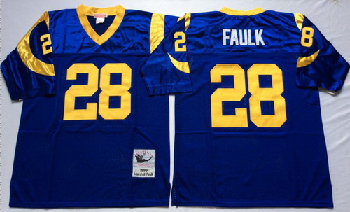 Mitchell And Ness Rams #28 marshall faulk Blue Throwback Stitched NFL Jersey