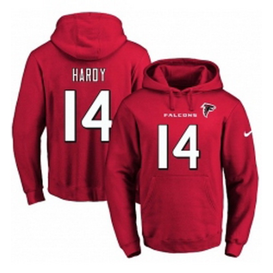 Home>Hoodie T Shirt>NFL Hoodie>Atlanta Falcons>Men>NFL Mens Nike Atlanta Falcons 14 Justin Hardy Red Name Number Pullover Hoodie