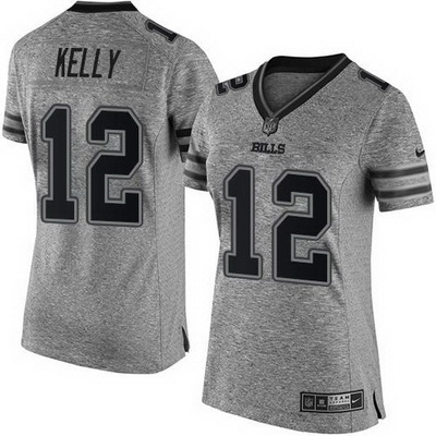 Nike Bills #12 Jim Kelly Gray Womens Stitched NFL Limited Gridiron Gray Jersey