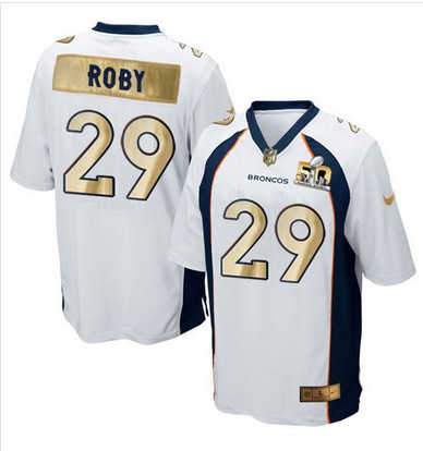 Nike Broncos #29 Bradley Roby White Mens Stitched NFL Game Super Bowl 50 Collection Jersey