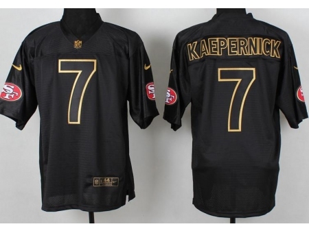 Nike San Francisco 49ers 7 Colin Kaepernick Black PRO Gold Lettering Fashion NFL Jersey