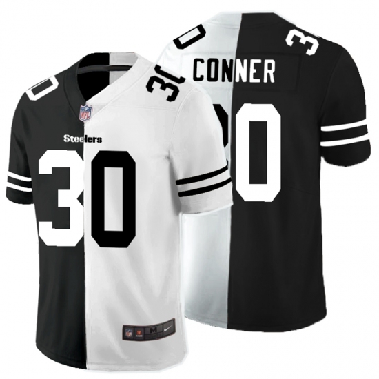 Home>NFL>Pittsburgh Steelers>Men>Nike Steelers 30 James Conner Black And White Split Vapor Untouchable Limited Jersey