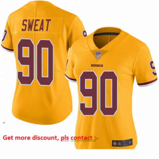 Redskins 90 Montez Sweat Gold Women Stitched Football Limited Rush Jersey