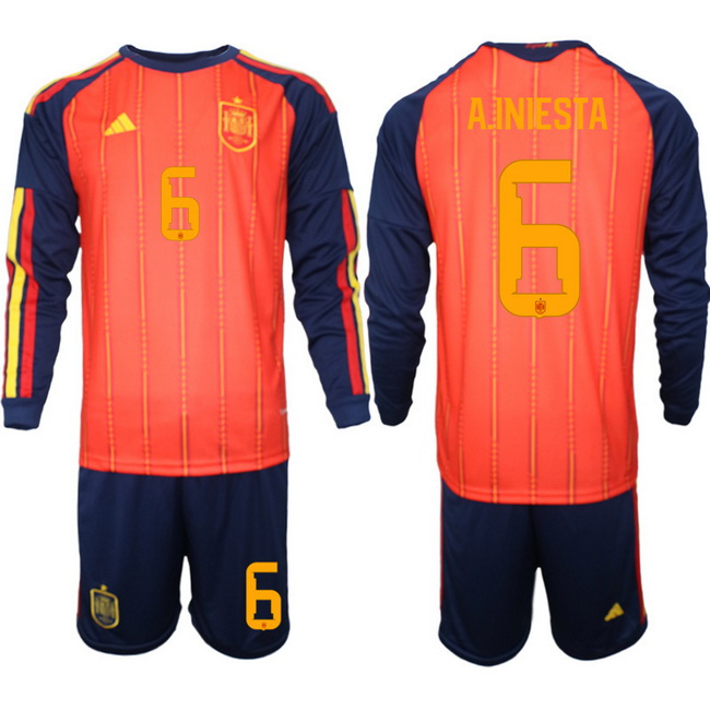 Spain 2026 FIFA World Cup Soccer Jersey Red LONG #6 A.INIESTA
