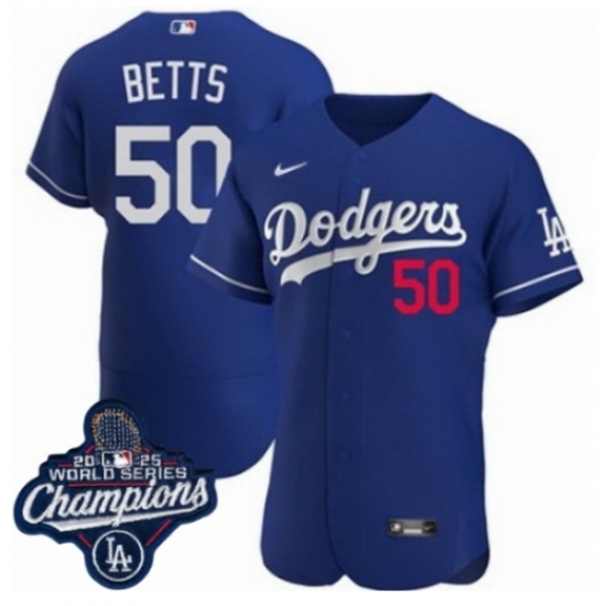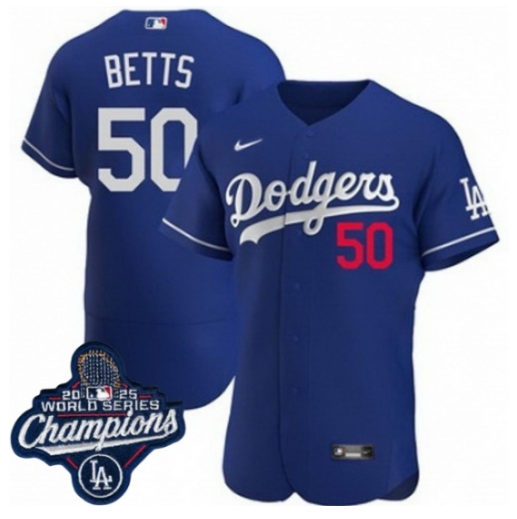 Toddler Los Angeles Dodgers 50 Mookie Betts Cool Base 2025 World Champions Stitched Baseball Jersey Blue