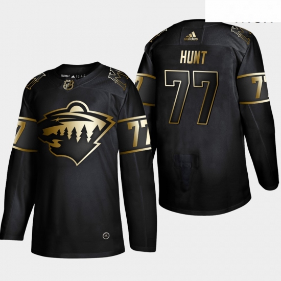 Home>NHL>Minnesota Wild>Men>Wild 77 Brad Hunt Black Gold Adidas Jersey