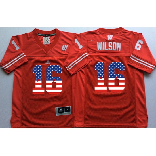 Wisconsin Badgers 16 Russell Wilson Red USA Flag College Jersey