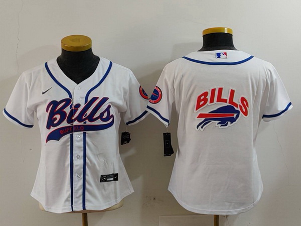 Women Buffalo Bills White Team Big Logo With Patch Cool Base Stitched Baseball Jersey 5