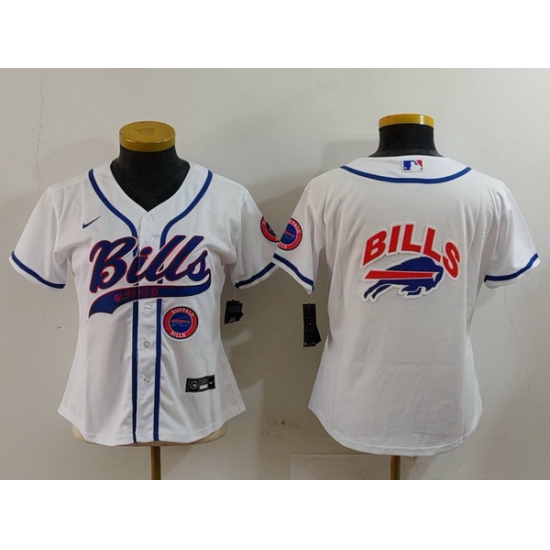 Home>MLB>Cleveland Guardians>Women>Women Buffalo Bills White Team Big Logo With Patch Cool Base Stitched Baseball Jersey