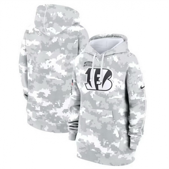 Home>Hoodie T Shirt>NFL Hoodie>Cincinnati Bengals>Women>Women Cincinnati Bengals 2024 Arctic Camo Salute To Service Club Fleece Pullover Hoodie
