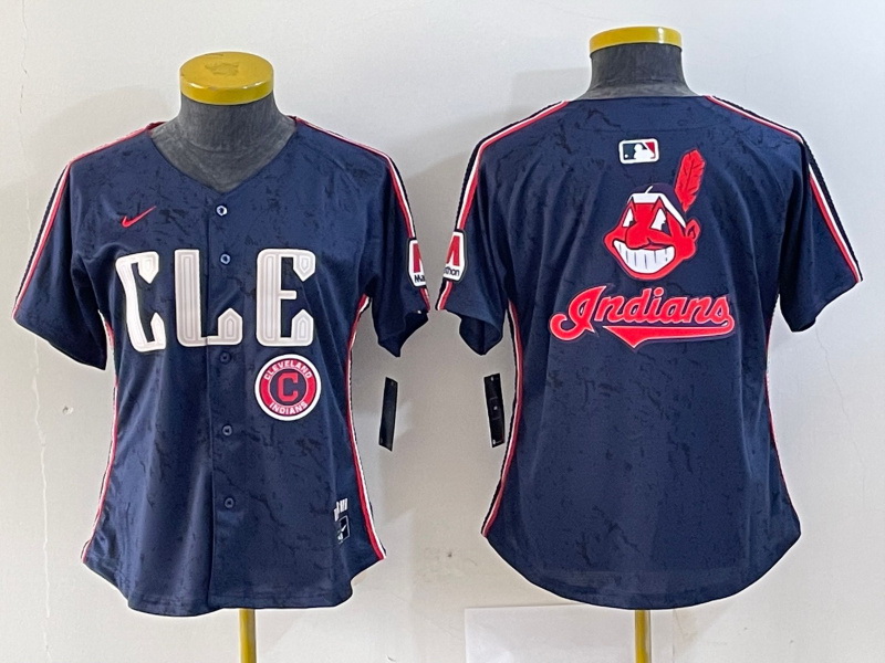 Home>MLB>Cleveland Guardians>Women>Women Cleveland Guardians Team Big Logo Navy 2024 City Connect Stitched Baseball Jersey 1