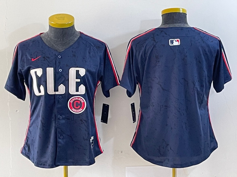Home>MLB>Cleveland Guardians>Women>Women Cleveland Guardians Team Big Logo Navy 2024 City Connect Stitched Baseball Jersey 3