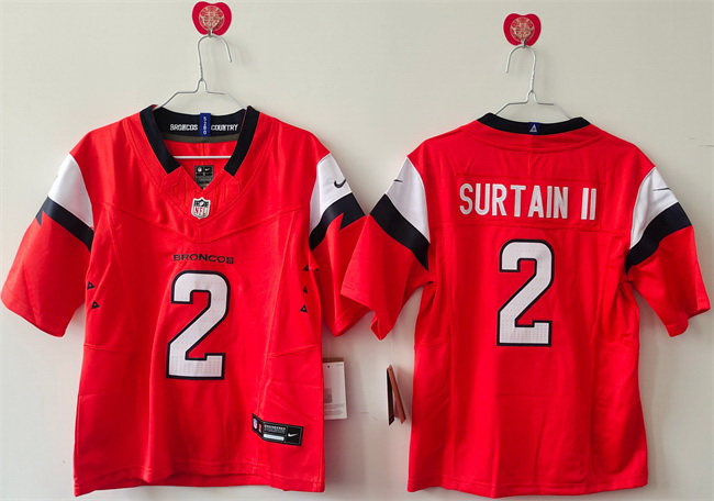 Home>NFL>Denver Broncos>Women>Women Denver Broncos 2 Pat Surtain II Orange 2024 F U S E Throwback Stitched Jersey