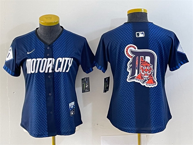 Home>MLB>Detroit Tigers>Women>Women Detroit Tigers Team Big Logo 2024 Navy City Connect Cool Base Limited Stitched Baseball Jersey