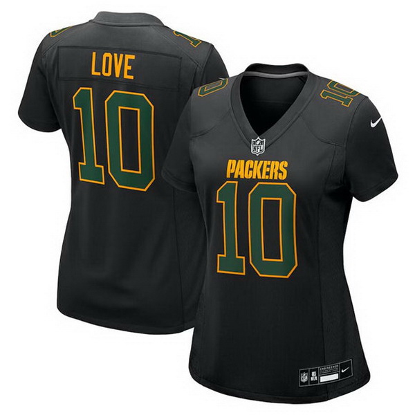 Women Green Bay Packers 10 Jordan Love Black Fashion Stitched Game Jersey