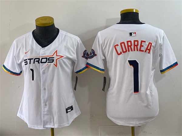 Home>MLB>Houston Astros>Women>Women Houston Astros 1 Carlos Correa White 2025 City Connect Limited Stitched Baseball Jersey