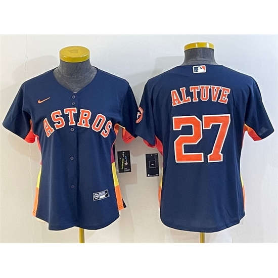 Home>MLB>Houston Astros>Women>Women Houston Astros 27 Jose Altuve Navy With Patch Cool Base Stitched Baseball Jersey