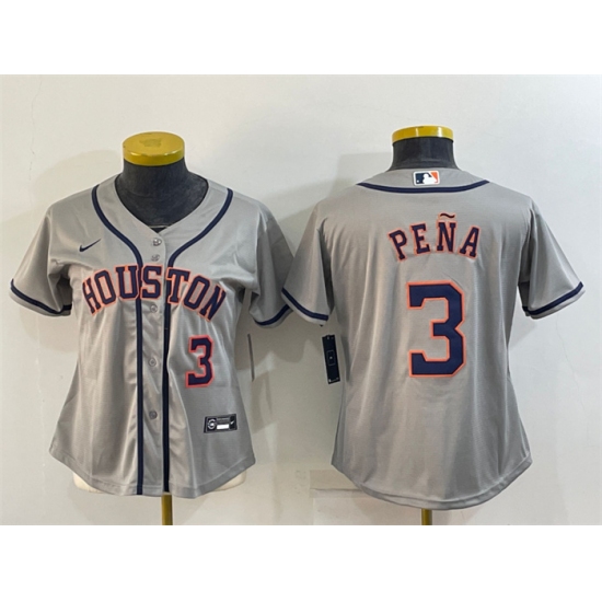 Home>MLB>Houston Astros>Women>Women Houston Astros 3 Jeremy Pe F1a Gray Cool Base Stitched Baseball Jersey