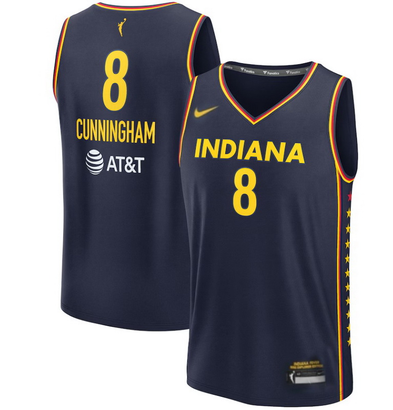 Women Indiana Fever Cunningham #8 Blue Stitched Basketball WNBA Jersey