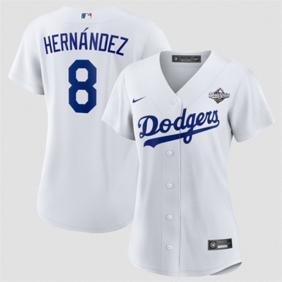 Home>MLB>Los Angeles Dodgers>Women>Women Los Angeles Dodgers 8 Enrique Hernandez White 2025 World Series Home Cool Base Limited Stitched Baseball Jersey