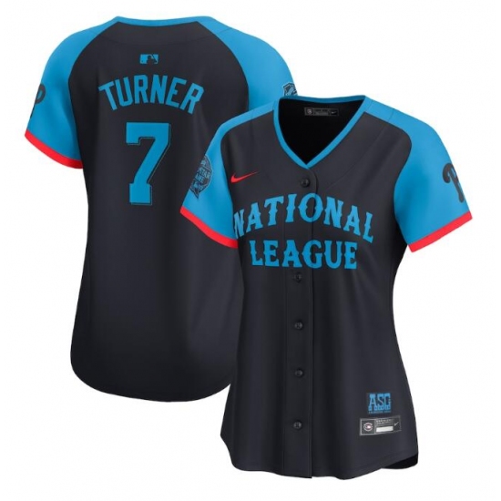 Women National League 7 Trea Turner Navy 2024 All Star Limited Stitched Baseball Jersey