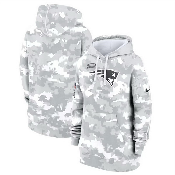 Home>Hoodie T Shirt>NFL Hoodie>New England Patriots>Women>Women New England Patriots 2024 Arctic Camo Salute To Service Club Fleece Pullover Hoodie