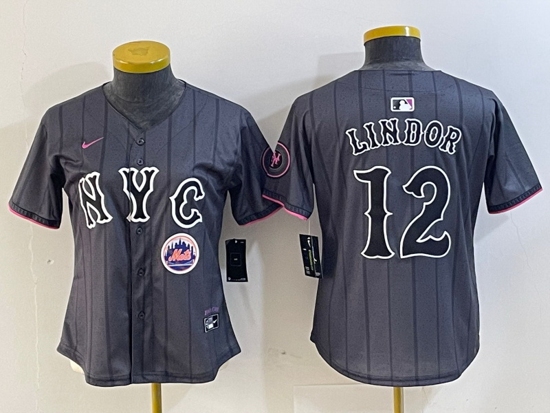 Home>MLB>New York Mets>Women>Women New York Mets 12 Francisco Lindor Graphite 2024 City Connect Limited Stitched Baseball Jersey 2 2