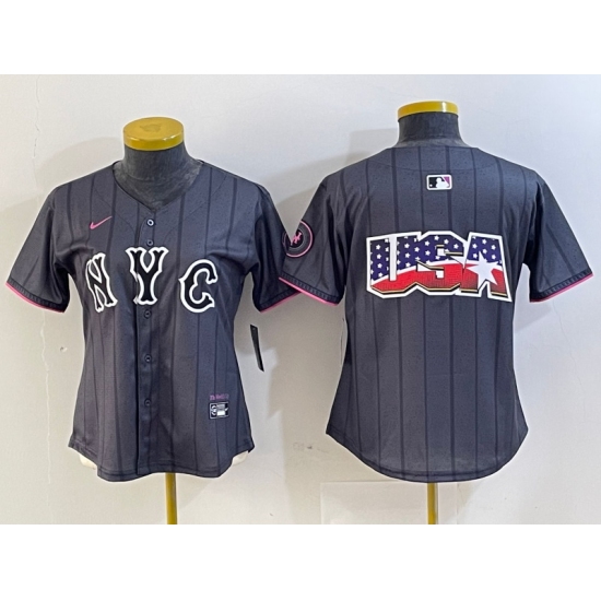 Home>MLB>New York Mets>Women>Women New York Mets Team Big Logo Graphite 2024 City Connect Limited Stitched Baseball Jersey 1