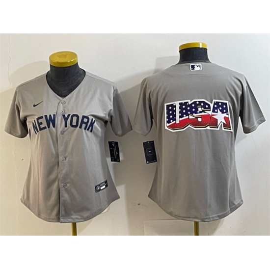 Home>MLB>New York Yankees>Women>Women New York Yankees Gray Team Big Logo Cool Base Stitched Jersey 5