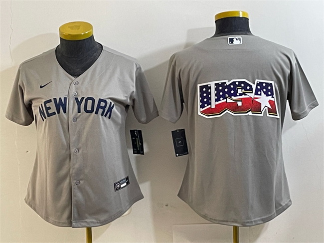 Women New York Yankees Gray Team Big Logo Cool Base Stitched Jersey 5