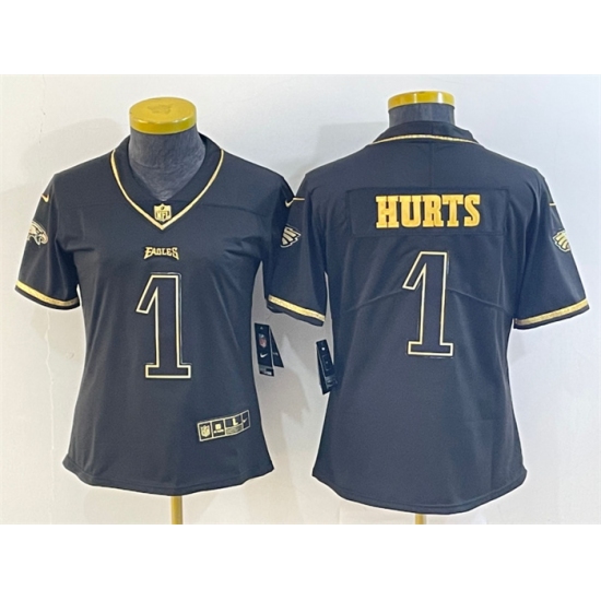 Women Philadelphia Eagles 1 Jalen Hurts Black Golden Edition Stitched Football Jersey