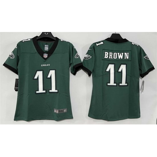Women Philadelphia Eagles 11 A J Brown Green New Vapor Untouchable Limited Stitched Football Jersey