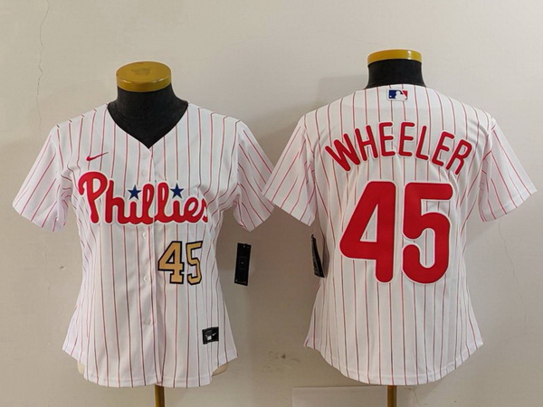Women Philadelphia Phillies 45 Zack Wheeler White Stitched Baseball Jersey 2