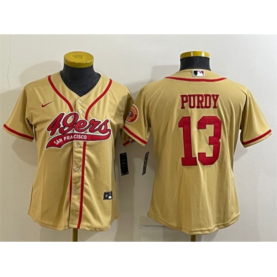 Home>NFL>San Francisco 49ers>Women>Women San Francisco 49ers 13 Brock Purdy Gold With Patch Cool Base Stitched Baseball Jersey