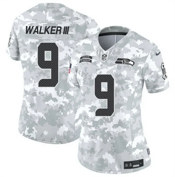 Home>NFL>Seattle Seahawks>Women>Women Seattle Seahawks 9 Kenneth Walker III 2024 F U S E Arctic Camo Salute To Service Limited Stitched Football Jersey