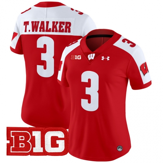 Women Wisconsin Badgers 3 Tawee Walker Red Alternate 2024 Vapor Limited Jersey All Stitched